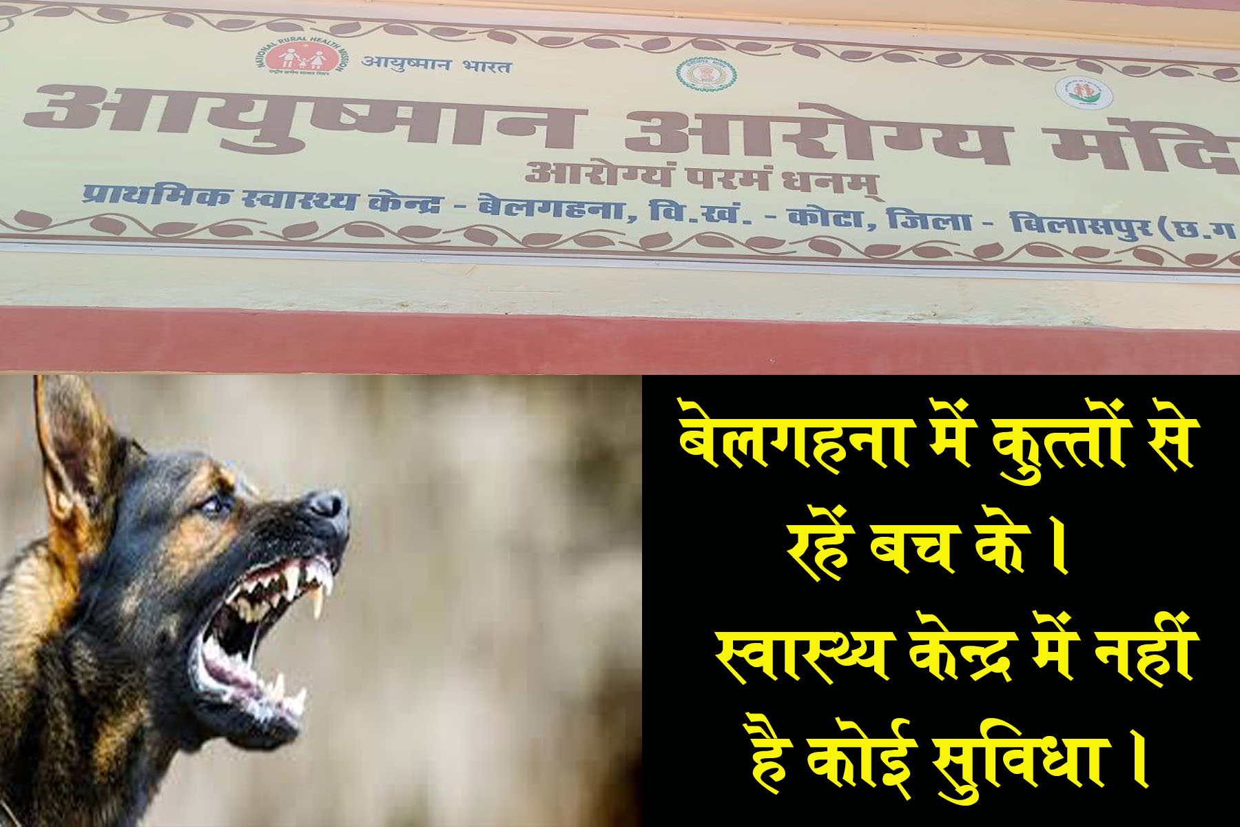 बेलगहना में कुत्तों से रहे बचके , स्वास्थ्य केन्द्र में नहीं है कोई सुविधा ।