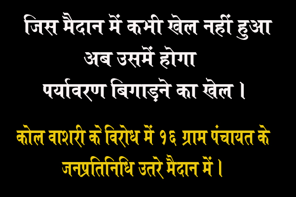 करगीरोड कोटा – कोटा जनपद के ग्राम पंचायत अमाली में खुलने वाले कोल वाशरी के लिए छत्तीसगढ़ पर्यावरण संरक्षण मंडल द्वारा 22 तारीख को 16 ग्राम पंचायतों की जनसुनवाई कोटा के निरंजन केशरवानी कालेज के उस मैदान में होना जहां आज तक एक खेल भी आयोजित नहीं हुए मतलब जहां कोटा के खेल भविष्य को बनाने के खेल होने थे अब उस मैदान में कोटा के पर्यावरण को बिगाड़ने का खेल खेला जाएगा । लेकिन इसके पहले ही विरोध की कई आवाज उठने लगी है ये अलग बात है कि इस विरोध का कितना असर होता है ये उसी दिन पता चलेगा ।