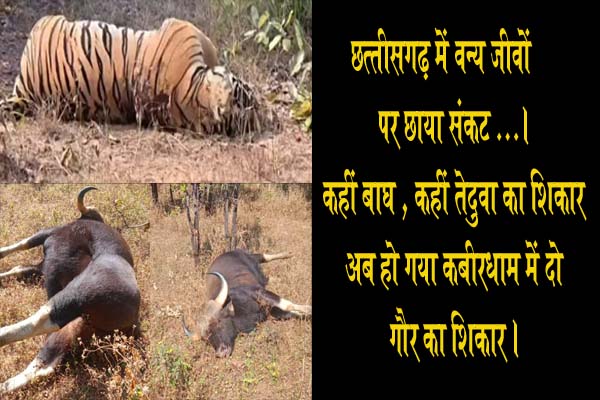 छत्तीसगढ़ में वन्य जीवों पर छाया संकट कहीं बाघ , कहीं तेदुवा तो कहीं गौर का शिकार ।